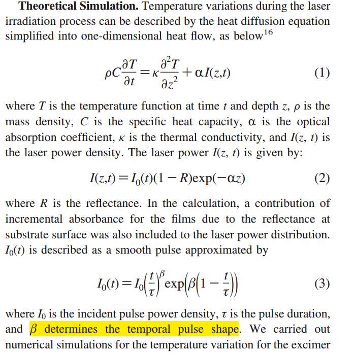 最近想使用MATLAB模拟出激光辐射金属薄膜情况下的金属薄膜的温度分布,但是问题复杂在热源并不是稳定热源,在金属薄膜表面上随时间和厚度变化的,所以离散起来会比较麻烦,还请各位帮忙看看,有什么好的方法将这个模拟出来。只需要一维的模拟就行,先抛砖引玉一下。 附件是温度场的控制方程。 Equations.jpg |