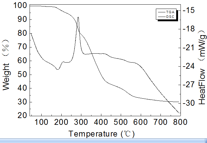 然后,这里结合TGA图对DSC进行分析:开始DSC曲线出现启动转移吸热,然后少量水汽(挥发成分挥发),接着出现玻璃化转换温度相对较小的吸热峰,最后是一个放热反应。具体结合物质作相关的分析;