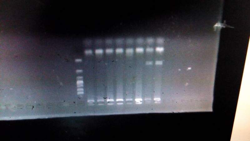 小弟我是新手,最近在做转基因小鼠基因型鉴定,先用苯酚/氯仿/异戊醇,提取小鼠尾巴DNA,然后加体系,做PCR,之后酶切4小时,做了好几次出现各种问题,之前是DNA提不出来,换了试剂好了,可是现在目的条带在琼脂糖电泳跑不出来是什么原因,135条带为什么跑不出来,后面两个是其他类型的鼠为什么可以 FC4727C0E2D1DCE06D37E6E263611462.jpg |