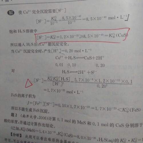 答案如图所示,为什么第一次沉淀时只考虑硫化氢二级电离,而第二次就考虑一二级电离。如图划红线部分,同种物质用两个公式。基础比较差,谢谢解答。 发自小木虫Android客户端 |