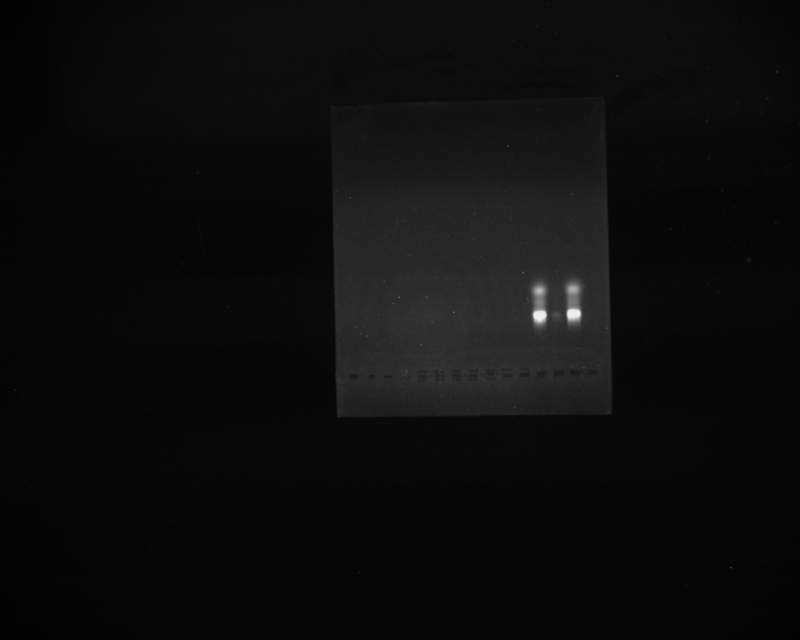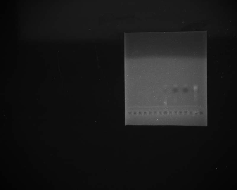 这从右到左分别是cDNA、PCR产物1、PCR产物2、PCR产物3(非变性琼脂糖凝胶电泳)