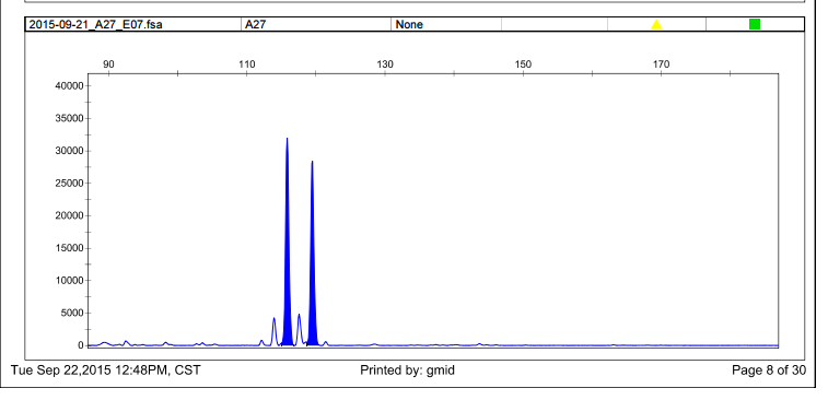 最近做了STR基因分型 发现得到结果中 SQO OS SQ 一栏 (图片右上角) 有几个不同标识 有的是绿色方块 有的是黄色三角 和蓝色的× 不知道这是什么意思? 求解 另外 分型给出的等位基因大小 是有小数点的(例:样品A04: 121.48 119.34) 这在统计的时候该如何统计呢? 是四舍五入 还是 忽略小数位? 分型的结果又为什么会带有小数位呢? |