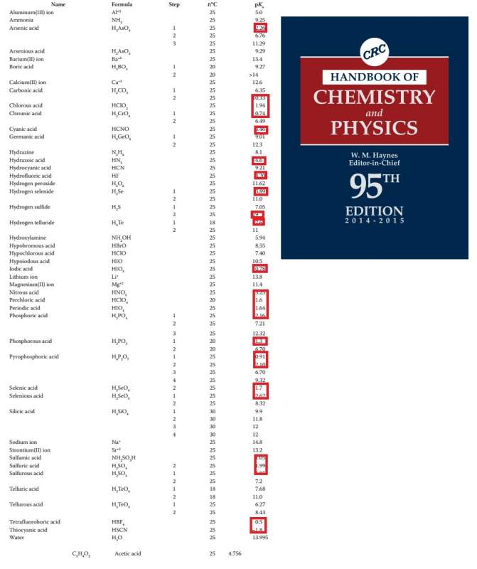 | pKa在水和乙酸之间的物质有哪些?请附上各物质的PKa值!非常感谢!!! |