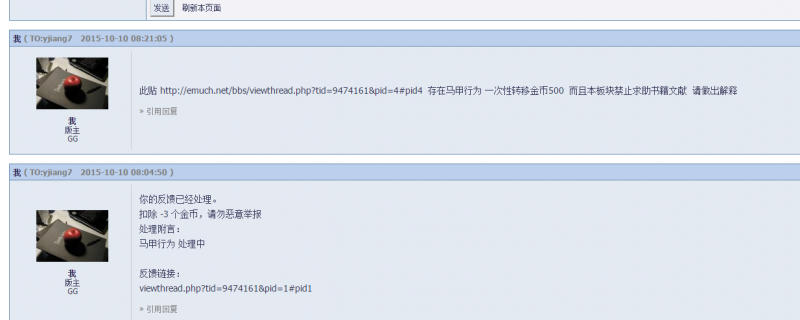 在高分子版帖子中https://muchong.com/bbs/viewthread.php?tid=9474161&pid=3#pid3 ID yjiang7 使用IP IP:112.5.**** ID luzicuo 使用IP IP:112.5.**** 按照https://muchong.com/bbs/viewthread.php?tid=1996653中所示,认为ID yjiang7 以及 luzicuo 有利用马甲扰乱论坛秩序的行为的嫌疑。 现要求@yjiang7 @luzicuo 在两日内回帖解释。 上面两位没有给与回复,按照马甲https://muchong.com/bbs/viewthread.php?tid=1996653处罚,没收所得金币 对于ID yjiang7,扣除30BB, 对于IDluzicuo,扣除所得金币500BB。处理链接如下 https://muchong.com/bbs/viewthread.php?tid=9474161&pid=3#pid3 QQ图片20151013164231.png |