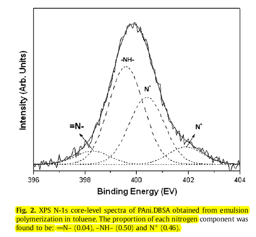聚苯胺 XPS 分峰 没有出现-N=峰 急急急!!1 已有1人参与