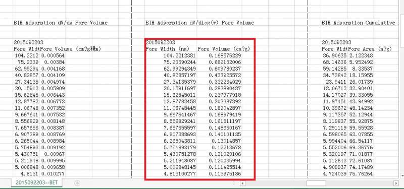用的数据是Pore Width (nm)和Pore Volume (cm?g)吗?