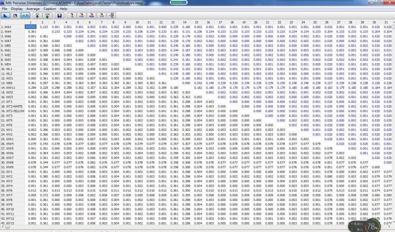 关于MEGA计算出来的数据,不知道是不是序列相似性!用MEGA将菌株的序列比对过之后,然后compute pairwise distances ,最后得出的结果图,不知道是不是序列之间的相似性,想问有没有人懂得这方面的! 2.jpg |