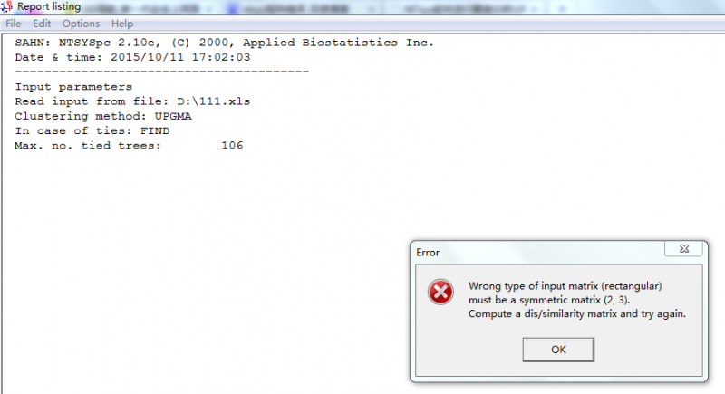 用NTSYS聚类出问题了,求大虾帮忙。附上我的95excel和NTSYS出现错误的界面。求大家解答 @A[]F`{@TEMGB0}0~43L(PO.png _[T@7O@~12V2ZIO)SL]C{RP.png |