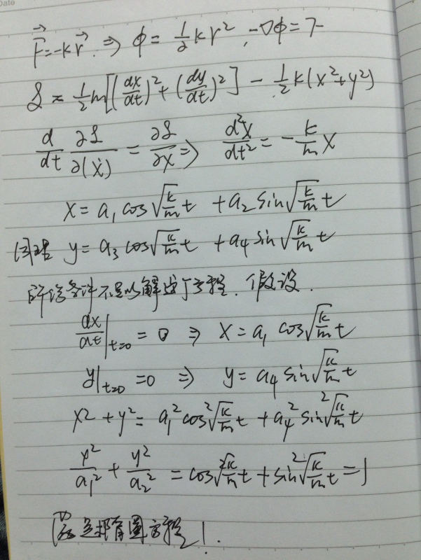 求助:请问当有心力不是万有引力时,如何证明其轨迹形状?例如:F=-kr,证明其轨道为椭圆。 发自小木虫Android客户端 |