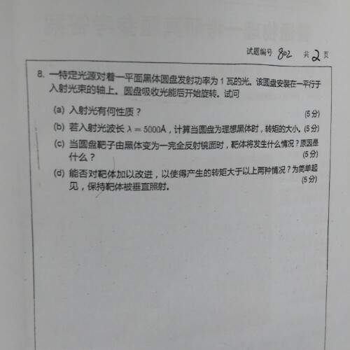 求解答一道南大13年普物题。光垂直照射在一个圆盘上,会引起圆盘的旋转吗? 已有5人参与