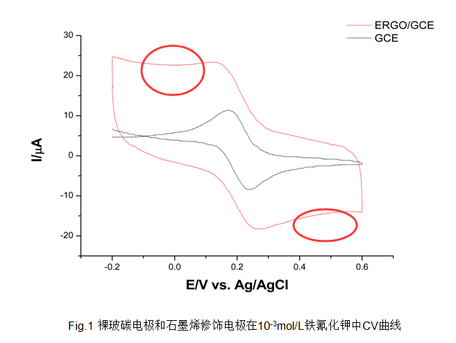 各位大神求帮助,刚开始接触电化学,本人电化学菜鸟一枚,如图,玻碳电极修饰上石墨烯以后,峰电流增大,峰形变宽,做了好几次都是这样,怎么回事?求指教。。。。 $OQ0MFO04MT`_3JU@RZPUKA.png |