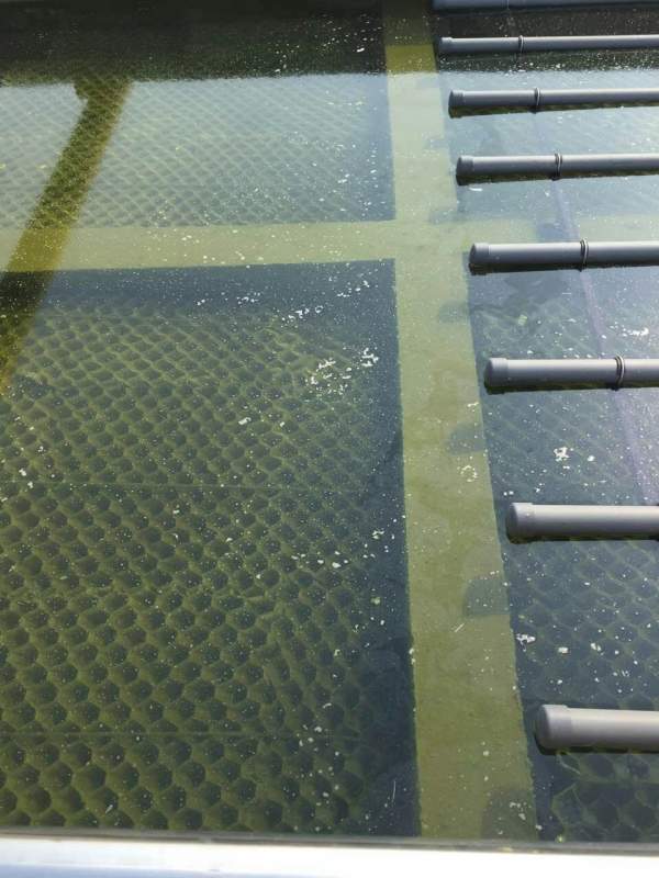 进行了光伏废水处理,由于进水水量(100t/d)及cod(50mg/l)均较小,目前只进行加pam和pac物化处理,3天处理一次。但物化沉淀池斜管上长了好多水藻,如下图,怎么原因呢,应怎么解决了,非常感谢。 mmexport1444796546593.jpg |