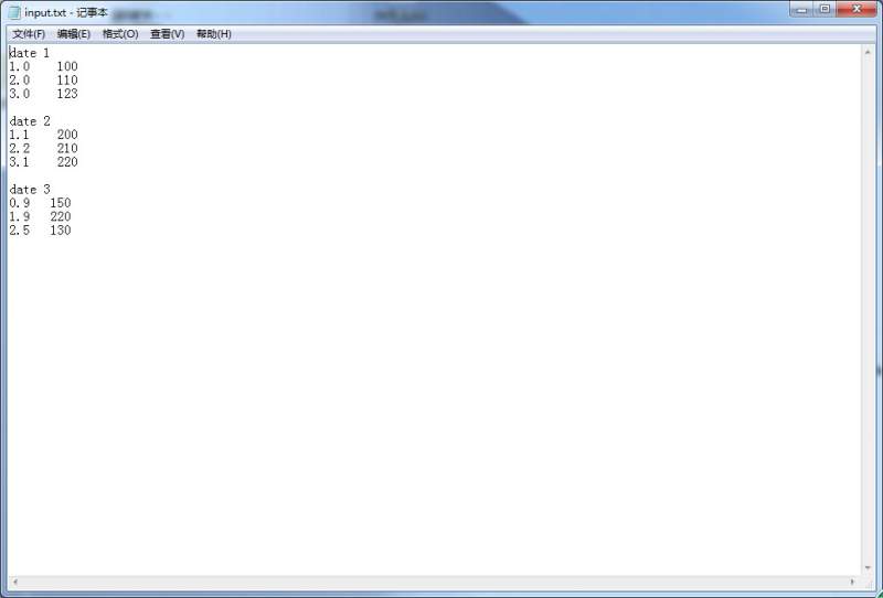 我现在有一个文本文件“input.txt”,里面有以关键词“date xxx”(xxx=1,2,3...)为开头的一系列数据,每个关键词下面有多行两列数据,现在我要在左列找到大小最接近"2.0"的数据所在的行,将该行与关键词的信息一起输出到另一个文本文件“output”中。求教该如何编程,最好是Fortran或python语言。 “input.txt”和“output.txt”的范例如图所示: |