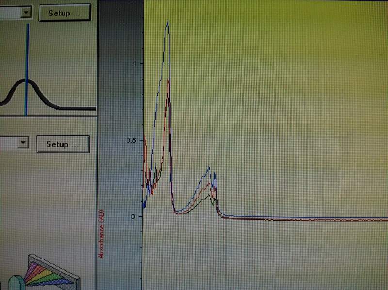 我是使用甲苯作为有机溶剂提取某些天然代谢产物的,在做紫外可见光谱分析时,使用乙醇作为参比溶剂及稀释甲苯溶液。这张图是我稀释了2000倍之后的3个不同代谢产物的甲苯提取物光谱图,但是感觉所有的峰都是甲苯,找不到我所提取的产物的峰。很急!要疯了! IMG_20151015_104532.jpg |