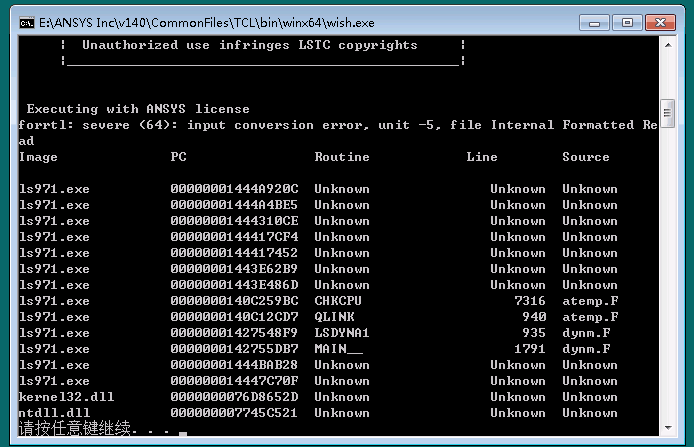 用ANSYS14.0/ls-dyna计算时,有人遇到图片所示的这种情况吗,提示executing with ansys license forrt1: severe <64>: input conversion error 2.png |