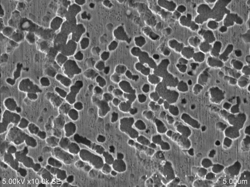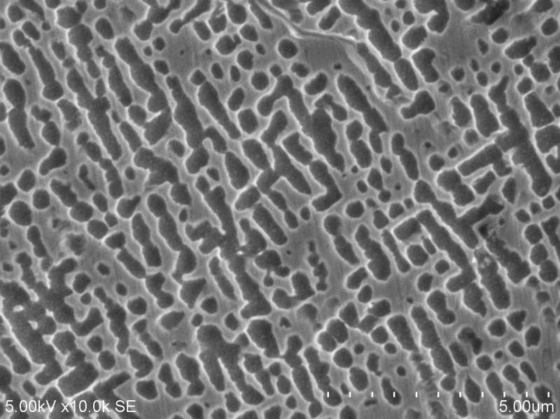 虫友们,小虫这几天做了一下有关DZ125的SEM观察,材料经过高温及离心应力载荷,图片如下: 经过抛光后,采用盐酸、硝酸、甘油的混合腐蚀剂腐蚀240s。 总共有5张图片,同种材料的不同位置 请问: 01和02、05能不能认为是筏化或者是粗大现象? 03和04之间的区别在哪? 01 02 03 04 05 |