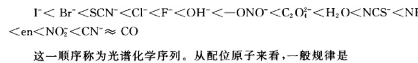 电负性小的配位原子比电负性大的配位原子能力强,分裂能也强,那为什么图上的分裂能次序是:碘小于溴小于氯?不矛盾吗?不应该是碘大于溴大于氯吗? 发自小木虫IOS客户端 |
