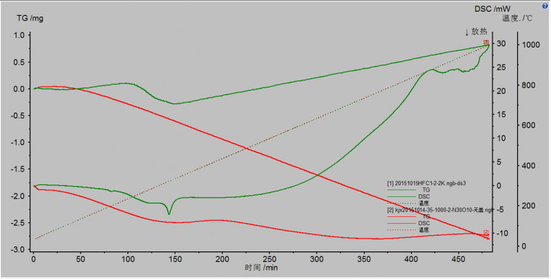 各位大侠,我做了镍锌铁氧体薄片(此薄片是尚未烧结生带--即烧结后才形成成品的镍锌铁氧体薄片)的DSC分析,但是从图谱上找不到我想要的信息。也就是图谱反应的信息和我之前的思考背道而驰,或许是我自己想法错误,但是我不愿轻易推到自己的理论,所以请DSC分析的高手赐教,必有重谢。请将图谱反映的重要的信息,较为详尽的叙述,谢谢。 HFC1-1-10K.png HFC1-2-2K.png |