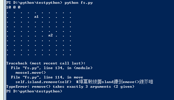 moose2 = Prey(island=royale, x=6, y=4, s='a2')