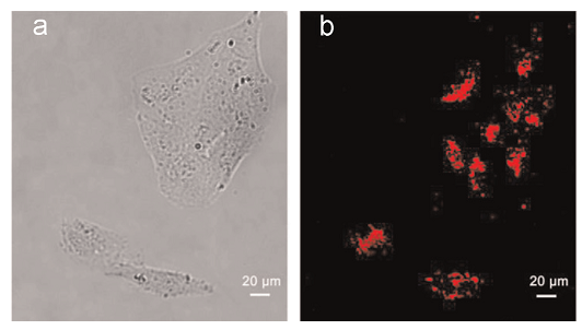 一般是有明场、暗场、叠加场,主要是为了直观的证明像上图中的红色材料是标记在细胞上的