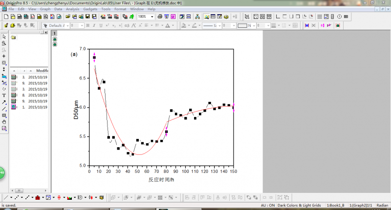 如图,我在你origin里做好散点图之后要拟合,最终趋势是要那条线趋于稳定渐渐平行于X轴。我想一次拟合总是拟合的不理想,这图是我分段拟合的结果,可是那两端曲线之间的衔接怎么办?或者哪位大神教我一次性拟合出来,并且拟合的跟整体散点分布趋势一致,最后曲线趋于稳定渐渐平行于X轴。 ISX%}`9}8WCZBZP3HFEE07G.png |
