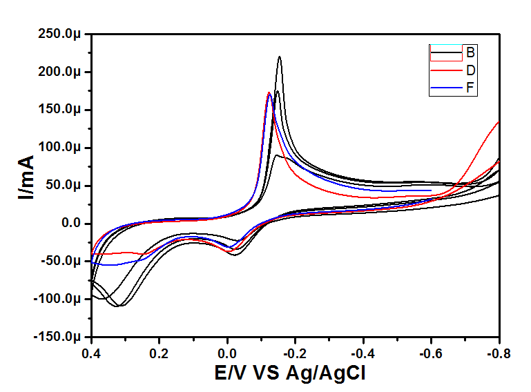 本人刚接触电化学不久,求助一个大家一个电化学的问题,希望不吝赐教。。。。。。 附件有一张循环伏安图,测试条件是:三电极体系,工作电极为玻碳电极/Cu2O; 对电极为铂电极; 参比电极为:Ag/AgCl. 电解液为0.1M PBS. 为什么会出现2个氧化峰?还有三个峰分别对应的哪个氧还?求帮忙解答,万分感谢! 1.png |