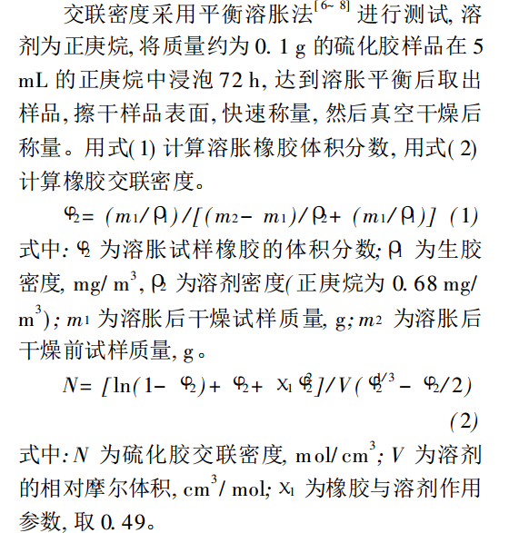 如图所示,平衡溶胀法计算主要有以下三种公式,我想知道区别是什么,都可以吗?另外公式1中的配方中生胶质量分数是什么意思,是不是说我配方橡胶100份,填料50份,那质量分数就是100/150?公式2中未填充硫化胶抽出物的质量分数又是指什么? 1.png 2.png 3.png |