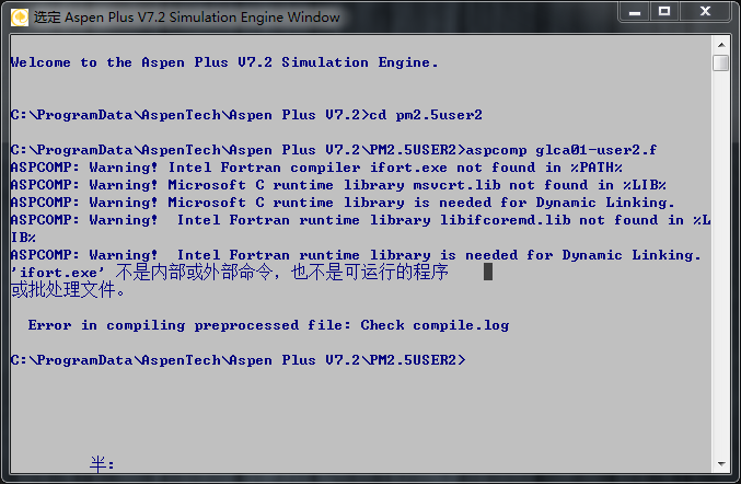 用Aspen编译Fortran程序出错