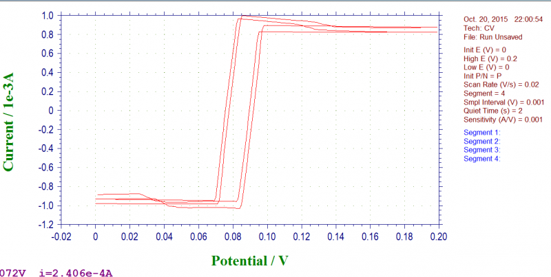 做ZnCo2O4纳米线(超级电容器材料),三电极测试时测了几圈后曲线很奇怪