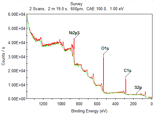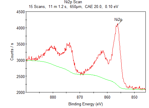 制备的碳酸镍在空气中放置会很快发黑,但是只在表层,想知道是否生成了镍的氧化物,于是把黑色的部分挂下来做了xps,数据和谱图如下,求各位帮忙看看。金币有些少,无奈实在是没有了。 xps1.png xps2.png |