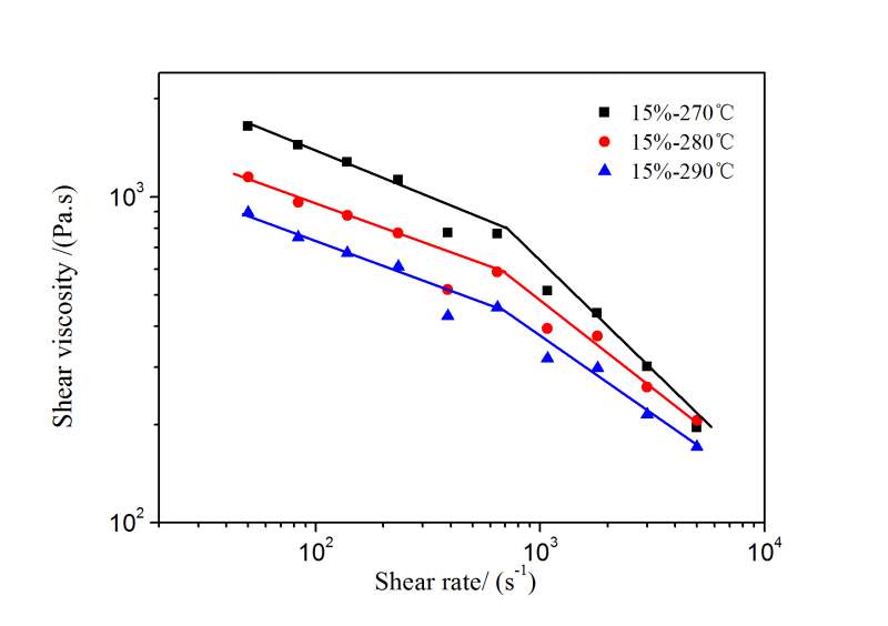 聚碳酸酯与橡胶共混物测试高压毛细管流变,为什么曲线分为两段? 已有1人参与