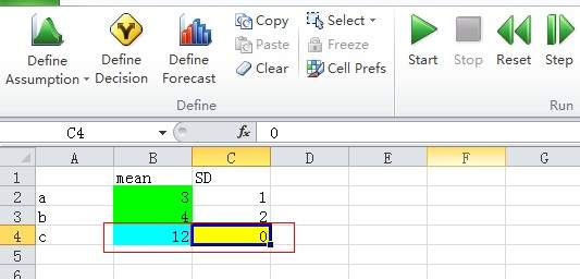a=3±1, b=4±2, 求c=a*b的标准差(SD)。 我在Crystall Ball中已经定义了变量和预测规则,下面如何操作? 请高手指点!非常感谢! 2015-10-22_095732.jpg |