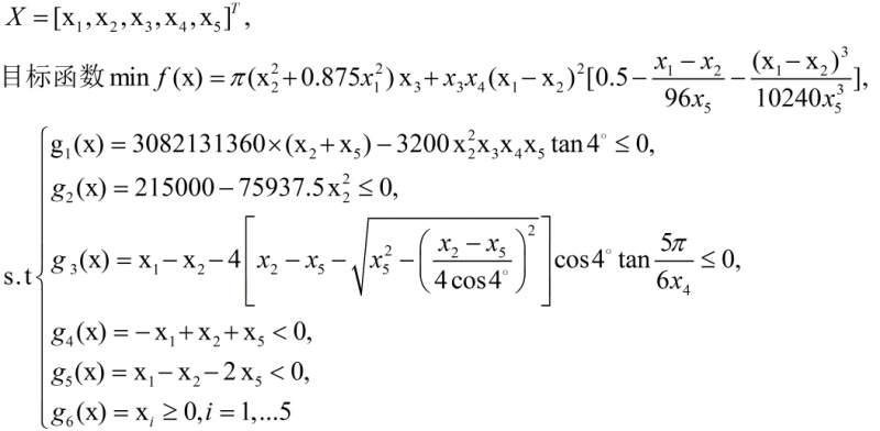 f=pi*(x(2)^2+0.875*x(1)^2)*x(3)+x(3)*x(4)*(x(1)-x(2))^2*(0.5-(x(1)-x(2))/(96*x(5))-(x(1)-x(2))^3/(10240*x(5)^3));