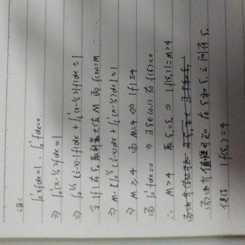 设函数f(x)在[0,1]上连续,且∫上限为1,下限为0 f(x)dx=0,∫上限为1,下限为0 xf(x)dx=1,试证明: <1>在[0,1]上存在x0使得:|f(x0)|>4 <2>在[0,1]上存在x1使得:|f(x1)|=4 QQ图片20151022222644.jpg |