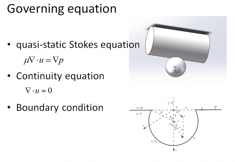 问题是在三维的圆柱壁上附着一个球,在雷诺数很低的情况下,有流体从圆柱一侧进入另一侧出去,简化后的STOKES方程就是准静态线性斯托克斯方程,几何连续性方程加上边界条件求解,边界条件是整个构型在周期性的扩张伸缩,想要求解析解或者半截细解,不知道能够行得通,求大神提供思路~万分感谢 1.PNG |