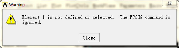 mpchg,材料编号,单元element编号,指的是将某个或者某些单元的材料修改为指定材料…你这命令应该是从别处弄来的吧?单纯就这几行命令,没有element在里面,就好比你要喝水,没有水你当然就喝不了,你要先把单元建好才能使用这命令…另外,你这意思是直接运行的这几行命令,这里面还缺少定义单元类型,比如在prep7下加一行et,1,solid186… 发自小木虫Android客户端 |
