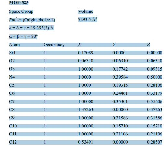 求MOF-525的cif文件,急需