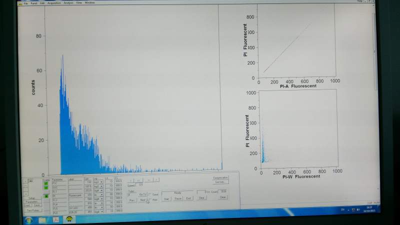 各位大神,请问有没有做植物流式倍性实验的,做了好久了,其他样品比如水稻,玉米都可以做出来可是我的样品一直没做出来(PS:我的样品新鲜叶片切碎之后杂质较多,较粘稠),不知道接下来怎么做了,望各位指点,不胜感激!!! 附上我的样品做出来的结果图:IMG_20151016_170553.jpg |