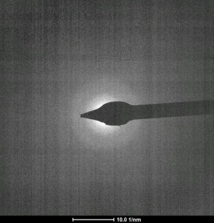如图为光刻法制备的金纳米板 厚度为~40nm, 在原位TEM 下加热,发现500℃(金的熔点1064)时金就会溶解成液态,而恢复到室温后又会变成单晶。望与有研究纳米金热稳定性能的大神们多多交流。 金纳米板 厚40nm 室温下的衍射花样 500℃时的衍射花样 恢复到室温后的衍射花样 |