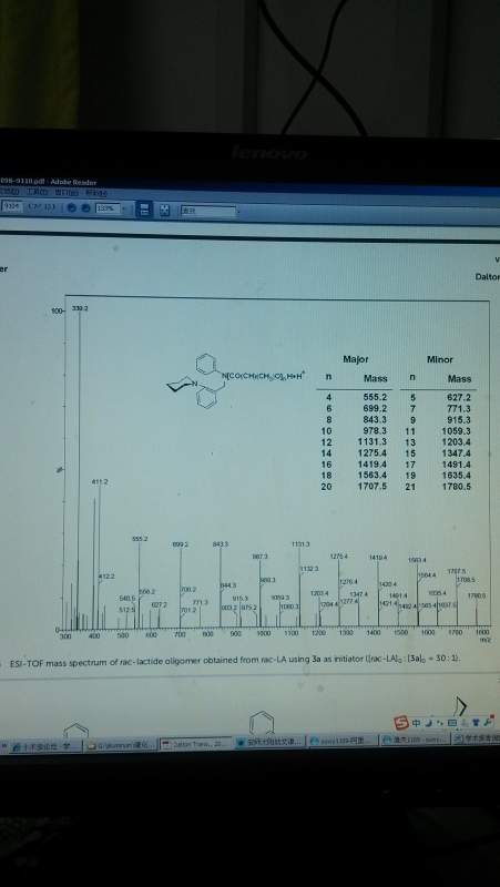 请教这张低聚物的质谱图是用的ESI源高分辨的质谱做出来的吗? 已有1人参与