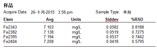 | 昨天送样测ICP铁离子含量,老师发了一堆数据,我是有机的,表示完全看不懂的样子,求大神分析一下~~谢谢~~ |