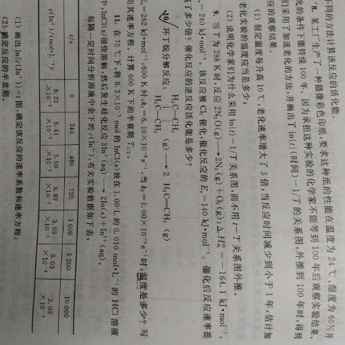 第一问用阿伦尼乌斯经验式求,你看看书,第二问是级数反应的半衰期,一级反应的半衰期是√2/k,你看看课本,物理化学,动力学那章 发自小木虫Android客户端 |