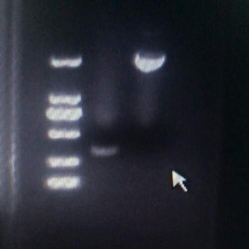 第一张是两片段胶回收产物电泳,后一张是overlap结果,片段比例10:1,退火温度用的55℃,求大神指点改进,谢谢了。。。 w100h2150707_1446038984_731.jpg w100h2150707_1446039009_526.jpg |