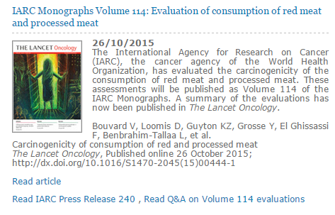 (IARC,WHO下属癌症研究机构,此文评估了红肉和加工肉类的致癌性)