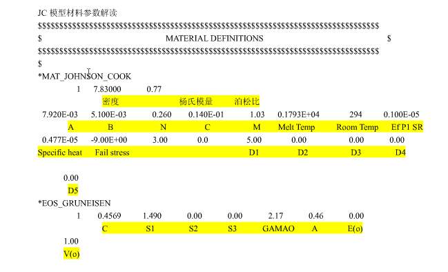 LS-DYNA里Johnson-cook参数代表的意义