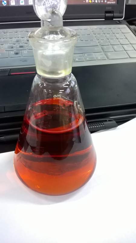 之前配过也是这样。稀释之后便可以看到显黄色,而浓度高时会泛红,并非变质杂质等因素引起。