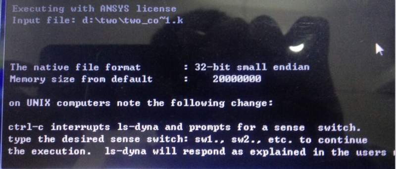 我在用ls-dyna计算时好像出问题,能正常运算,但是刚开始运行时,求解时间是7个多小时,按了ctrl+c sw2之后求解时间变成4小时,请问是不是有问题啊? 计算时出现下面这样的情况,是不是建模出问题了?求大神帮忙解答一下,谢谢 求解时出现的.jpg |