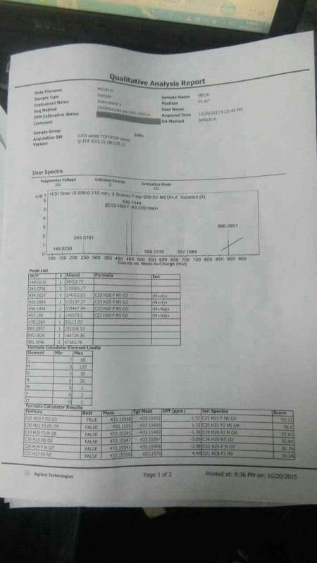 小弟托朋友打了个质谱,但不会分析,请大家帮帮忙 我做的是从石油醚里分到一个化合物,在液相上看是一个峰,拿去液质,告诉我有两个东西,并给我数据,但我看不明白 我想知道从这图上我能得到什么信息,比如是几个东西,大概是什么,分子式,或者对我结构鉴定有帮助的消息 谢谢 液质1.jpg |