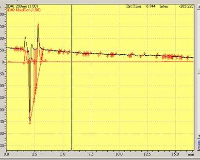 质谱小白一枚,请教大家:如图是目标产物,下面是水和甲醇为流动相走的LC-MS. 紫外出了三个峰,一次观察了质谱图。 产物的分子量是220,那为什么三个出峰地方的质谱图上,221附近找不到质谱峰?应该221或243出质谱峰就说明是我的东西了吧? 谢谢大家啦 1.JPG 2.JPG 3.JPG 4.JPG cccff39527e1c2bfb410e1216ef60d17.gif |