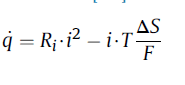 source=2.258e-6*pow(soc,-0.3952)*i*i-i*T*(99.88*soc-76.67)/F;